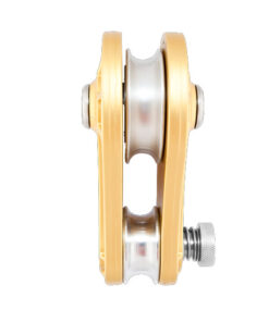 Polea de aluminio forjado para apeo. Todos los elementos de rodamiento están fabricados en acero inoxidable. Roldana principal de aluminio con rodamiento de agujas de gran resistencia.